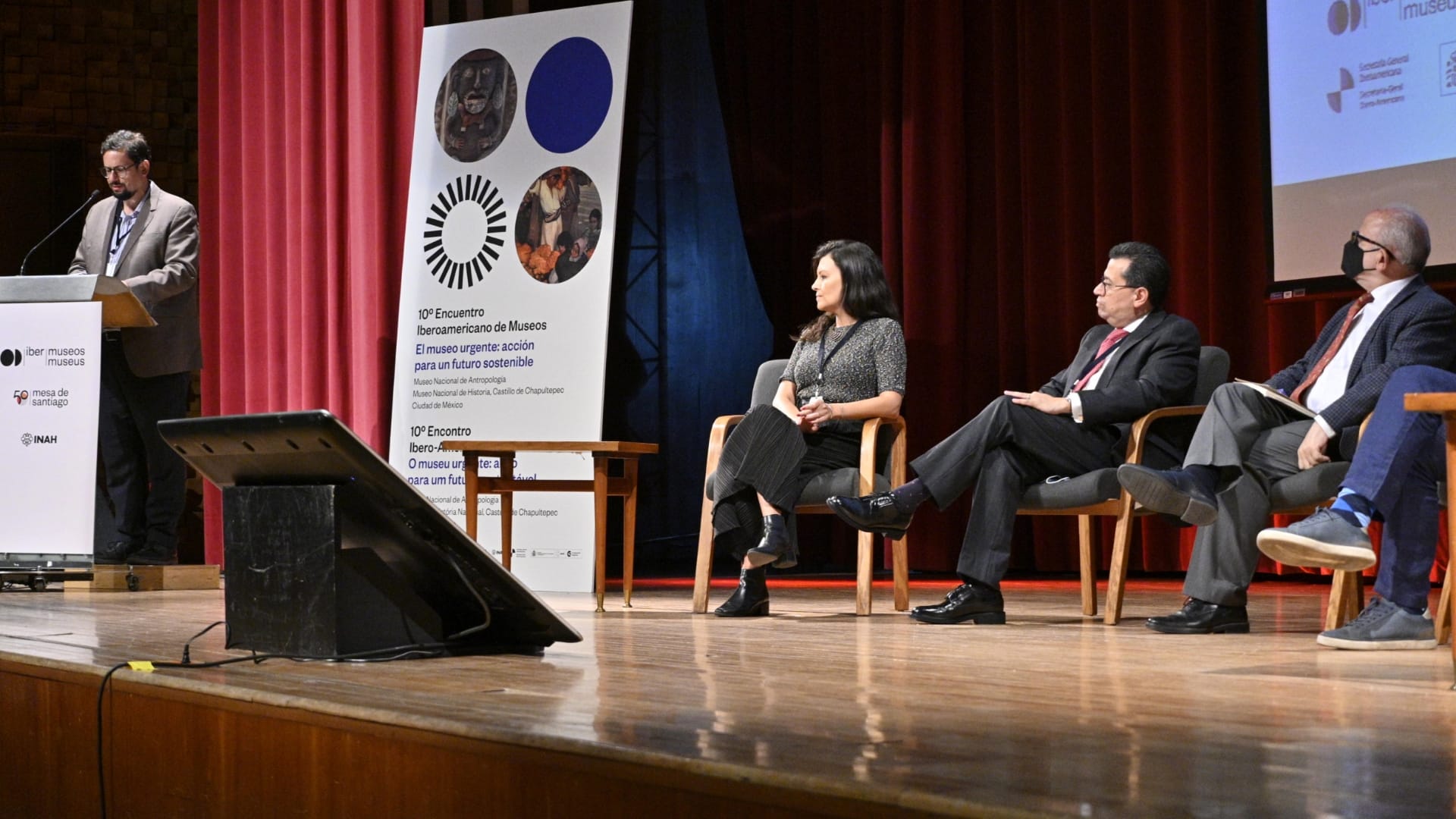 La reflexión en torno a los cuatro ejes temáticos del Encuentro en el contexto actual fue el centro de la mesa de apertura del 10.º EIM. Reconfigurar la acción: modos de hacer y tecnologías para la sostenibilidad; Decolonización y patrimonio museológico: nuevas incidencias frente a los retos históricos; Museos y comunidad: el rol social y educativo, y Derechos culturales para una sociedad más sostenible: perspectiva de género e inclusión, fueron los temas definidos a partir de un proceso de construcción colaborativa en el que se involucraron diversos profesionales de los países iberoamericanos. La cita regional cumplió su décima edición reafirmando el espíritu que guía al Programa Ibermuseos y la esencia del trabajo que promueve: la reflexión, el diálogo y la cooperación.